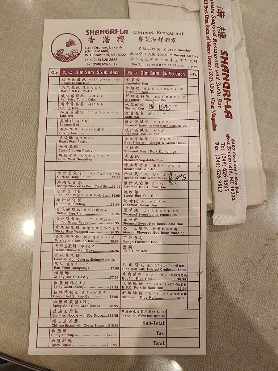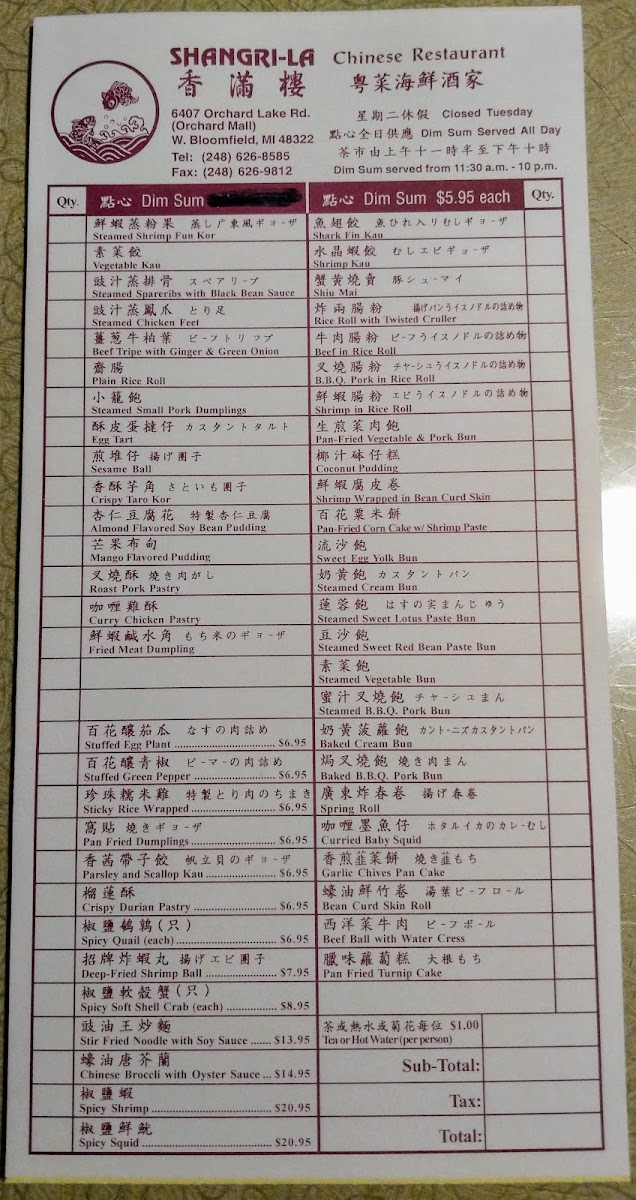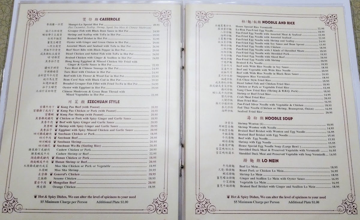 The menu at Shangri-La in West Bloomfield Township offers a diverse selection of traditional Chinese cuisine. It is structured to include a variety of categories catering to different dining preferences and times of day. Key sections of the menu include: