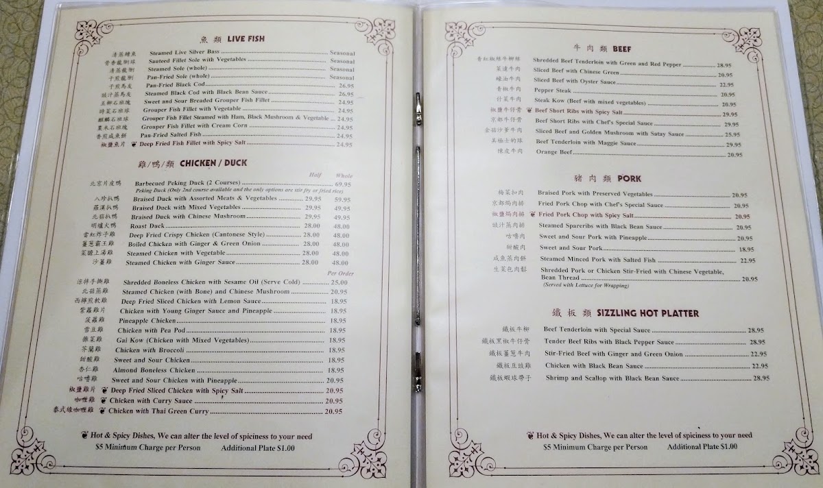 - Roast and Specialty Items: The menu also features items such as Roast Duck, Peking Duck Wrapped, Wrapped Sticky Rice, Taro Cake, Walnut Shrimp, and Sesame Chicken, providing a range of main courses with distinct flavors and preparations.